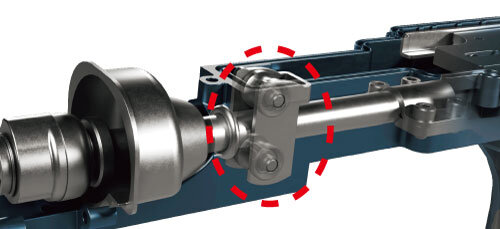 HiKOKI独自技術のローラーサポート構造で、先端の軸受け部分の強度を大幅にアップ、これにより従来製品より連続作業の摩耗や発熱を抑えることができ、製品寿命を伸ばすことができます。