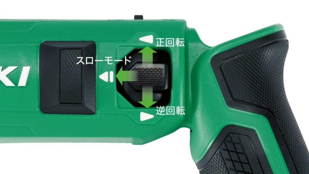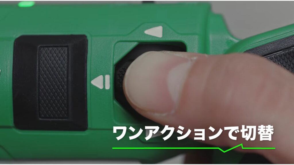 通常のインパクトドライバーとは違い、指一本で正転・逆転・スローモードへの切替が手間なくおこなえるため、現場状況に合わせてネジ締めと緩め作業を効率よく対応することが可能となり、ストレスフリーな使用感を味わえます。