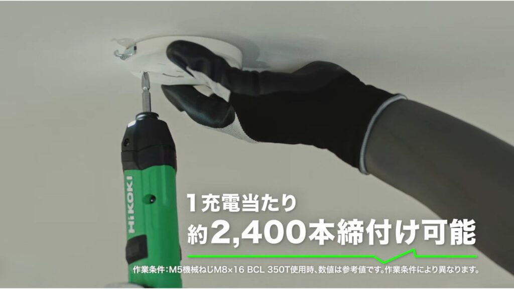 WH3DAには、5.0Ahの高容量バッテリーが付属しており、1充電当たりでM5の小ねじを約2,400本取り付けできるほどの作業量を有しています。