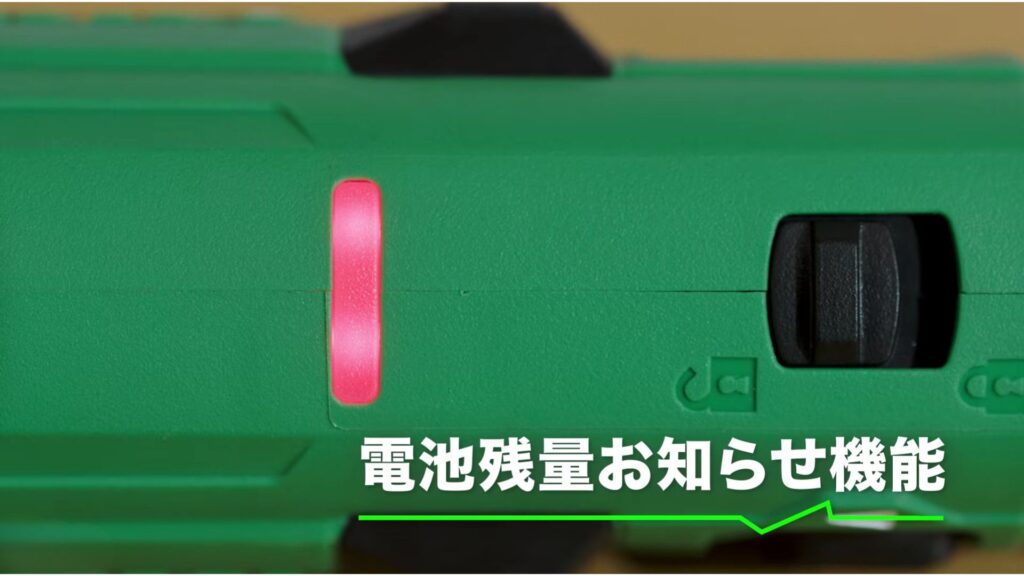 電池残量が少なくなると、本体上部のインジケーターが赤色に点灯するため、電池切れを未然に防ぐことができます。