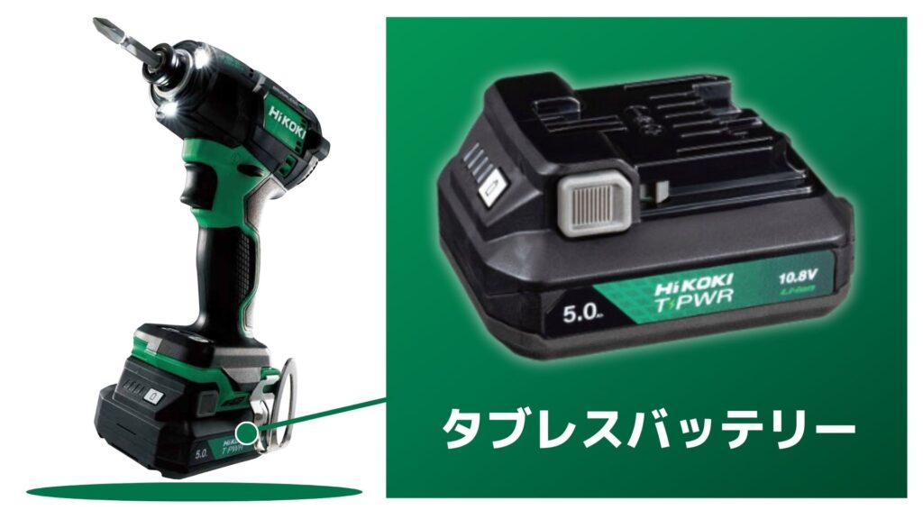HiKOKI新商品のタブレスバッテリーが標準付属品として同封。