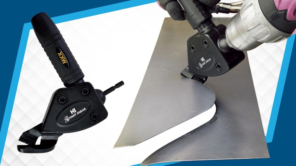 金属ばさみで鉄板をカットするには、とても力がいります。ロータリーシアーがあれば、楽々作業ができますね。
