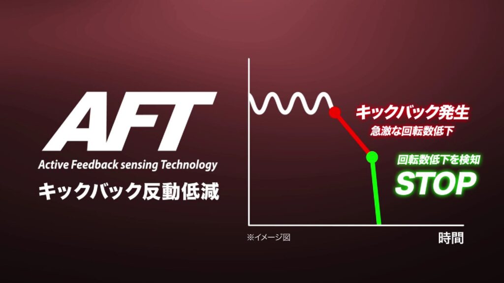 マキタ独自のAFT機能で、キックバック発生と同時に製品を強制的に自動停止して反動をほぼゼロにします。