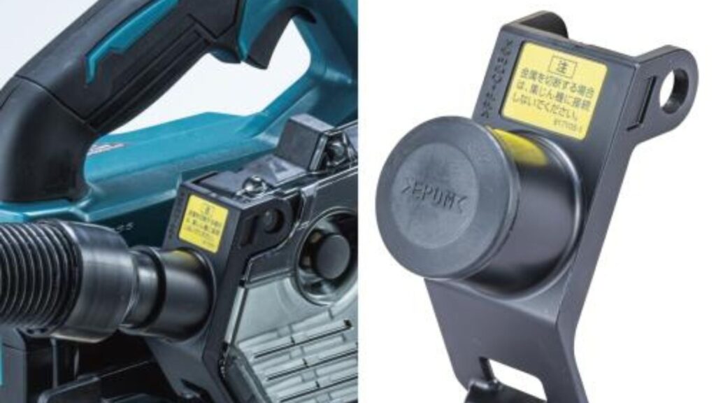本品を介して集じん機と接続することで木材や石こうボードの切断時に出る粉じんを効率よく吸い込み、周囲を汚さず快適な環境で作業を進められます。