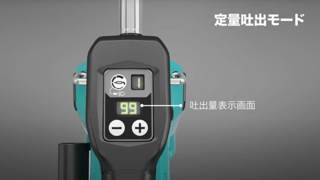 従来より最大吐出量が150%向上し、定量吐出モードの付加価値によって、連続的なグリスアップ作業をする方にとってとても魅力のある製品になります。