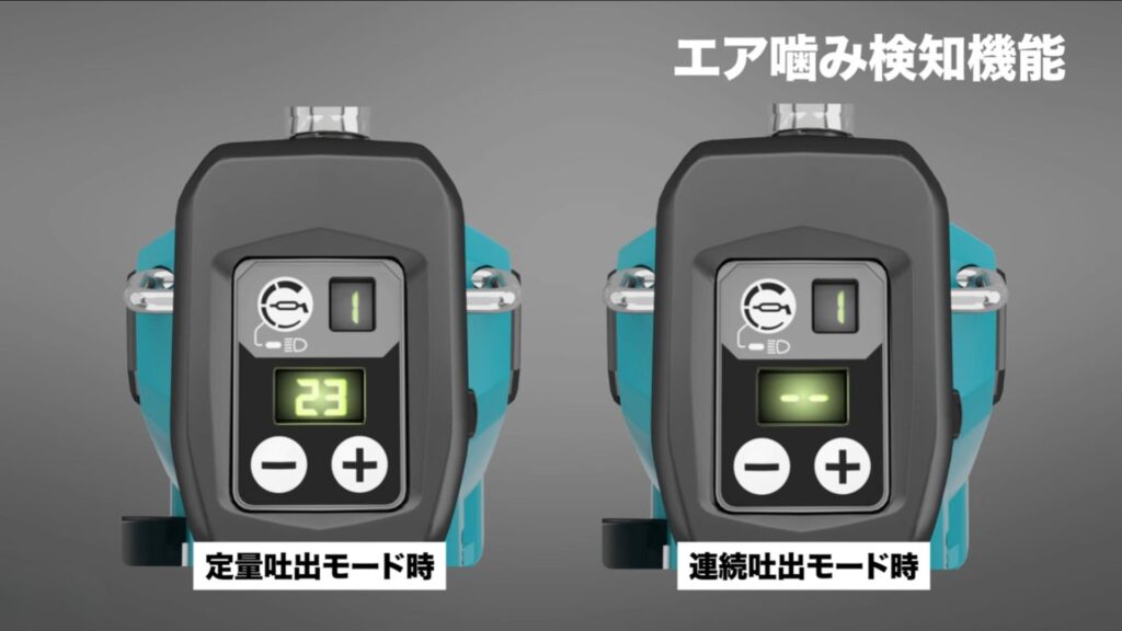 エア噛み検知機能搭載。グリスが吐出されない場合でも、画面が素早く点滅するため、すぐに異常に気付くことができます。