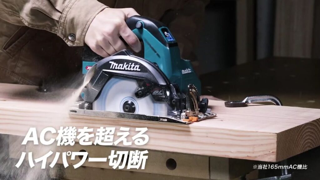 マキタ165mmマルノコの中では、最速の切断スピードなので、作業効率を求めるユーザーには必須の製品になりますね。
