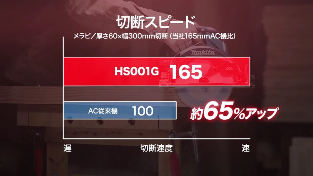 マキタ HS002Gは、刃物外径165mmのマルノコの中で一番の切断スピードを誇る製品になります。