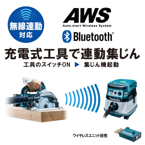 マルノコ本体と集じん機を無線で連携させることにより、マルノコのスイッチを入れた瞬間に集じん機のスイッチも一緒に入ります。