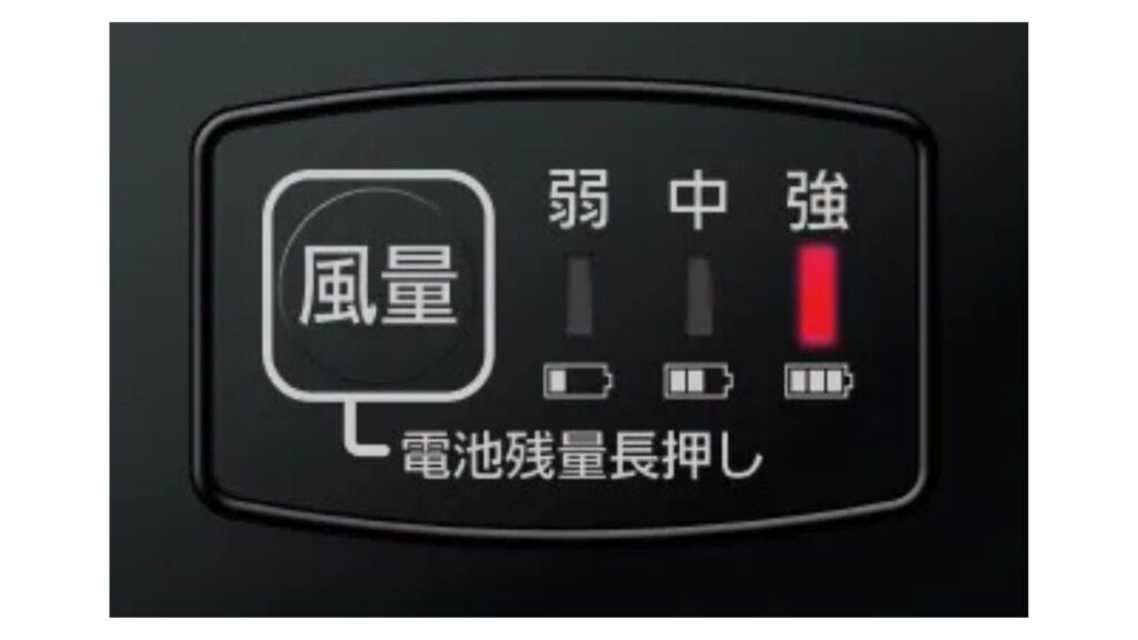 3段階の風量調節と残量表示で快適作業